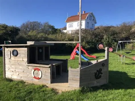 Kom hit och låt fantasin och leklusten flöda bland klätterställningar, fiskebåten Gullvåg och sjöbodar gjorda för bus och lek. Gunga så det killar i magen och bjud din kompis på en smaskig sandkaka från caféet. Men se upp, man vet aldrig om piraterna dyker upp! Tur då att öns polisstation finns här….